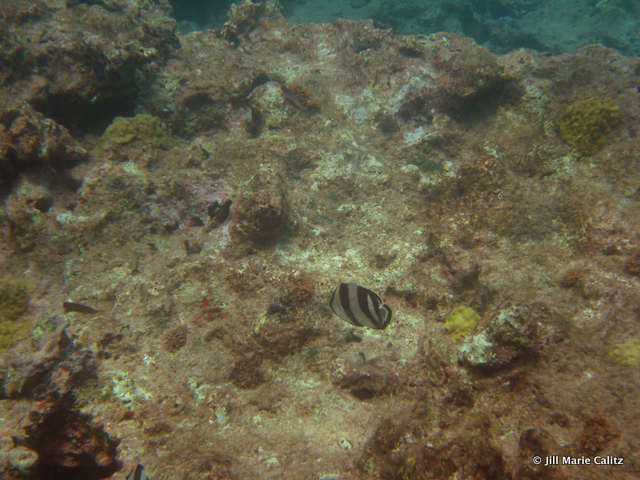 We then swam parallel to the beach towards a darker patch of water where Leana knew there was more coral, thus more sealife. The sealife was actually really good! I haven’t had a whole lot of luck snorkeling from shore & finding plenty of fish, but today was a great exception! We even saw a few seahorses! My favourite! Leana & Bronwyn saw a funky fish that I missed, but I saw plenty of other fish. I don’t know the names of the fish yet, but I am trying to learn! I know I saw Blue Tangs, Sergeant Majors, Butterfly Fish, and those really pretty black ones with yellow tails & luminescent blue dots on their bodies.